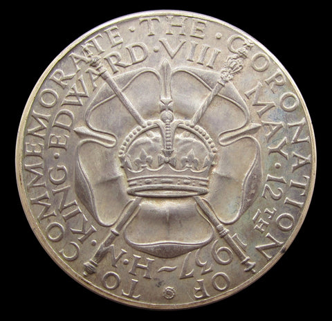 Obverse with crowned and draped bust of Edward VIII, reverse with crown on crossed scepters on a Tudor rose.