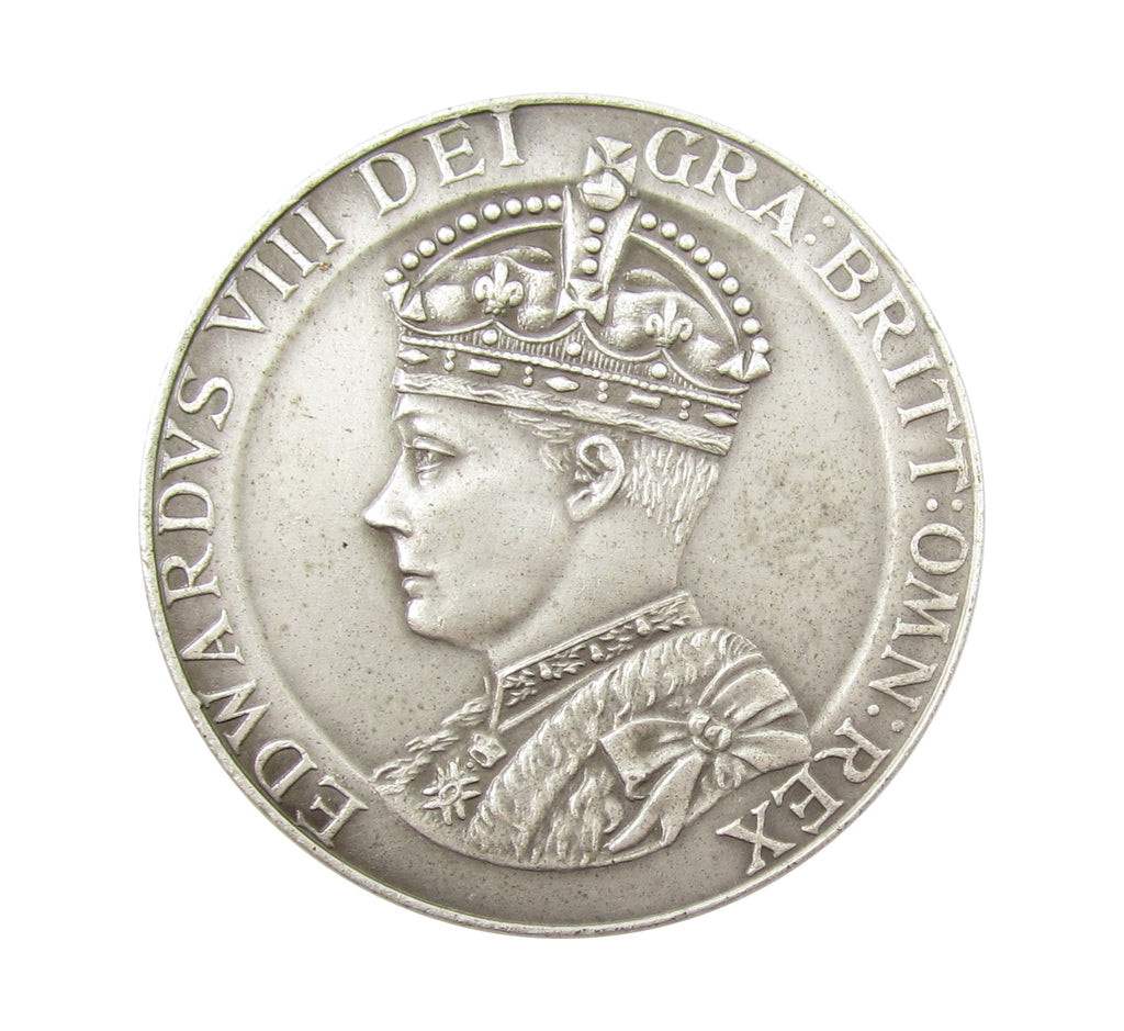 Obverse with bust of Edward VIII facing right, reverse with 'In Commemoration' above wreath.