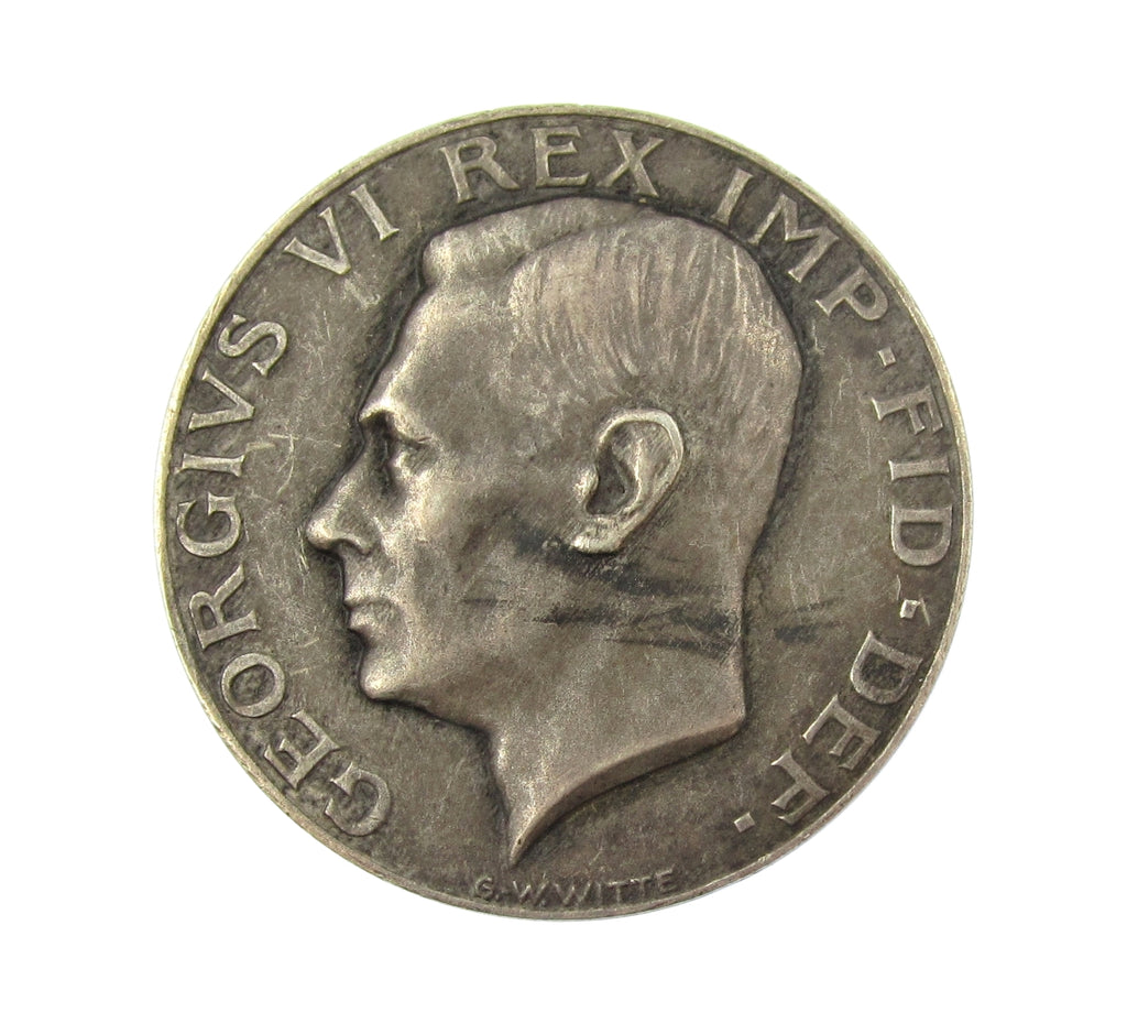 Obverse with bare head of George VI facing left, reverse with rampant lion on crown, above orb and sceptre. Edge engraved 'CARTIER - MADE IN FRANCE'.