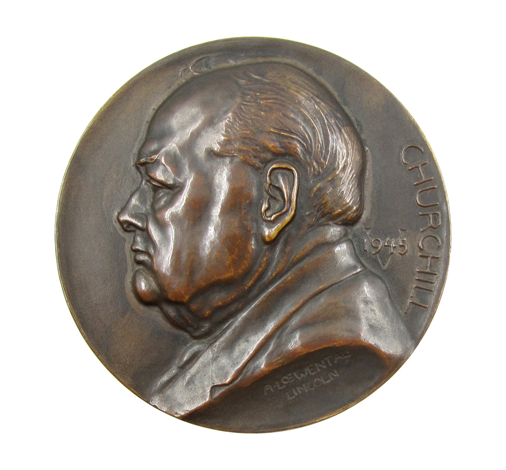 Obverse with bust of Winston Churchill, reverse with victory torch held in hand, issuing from clouds.
