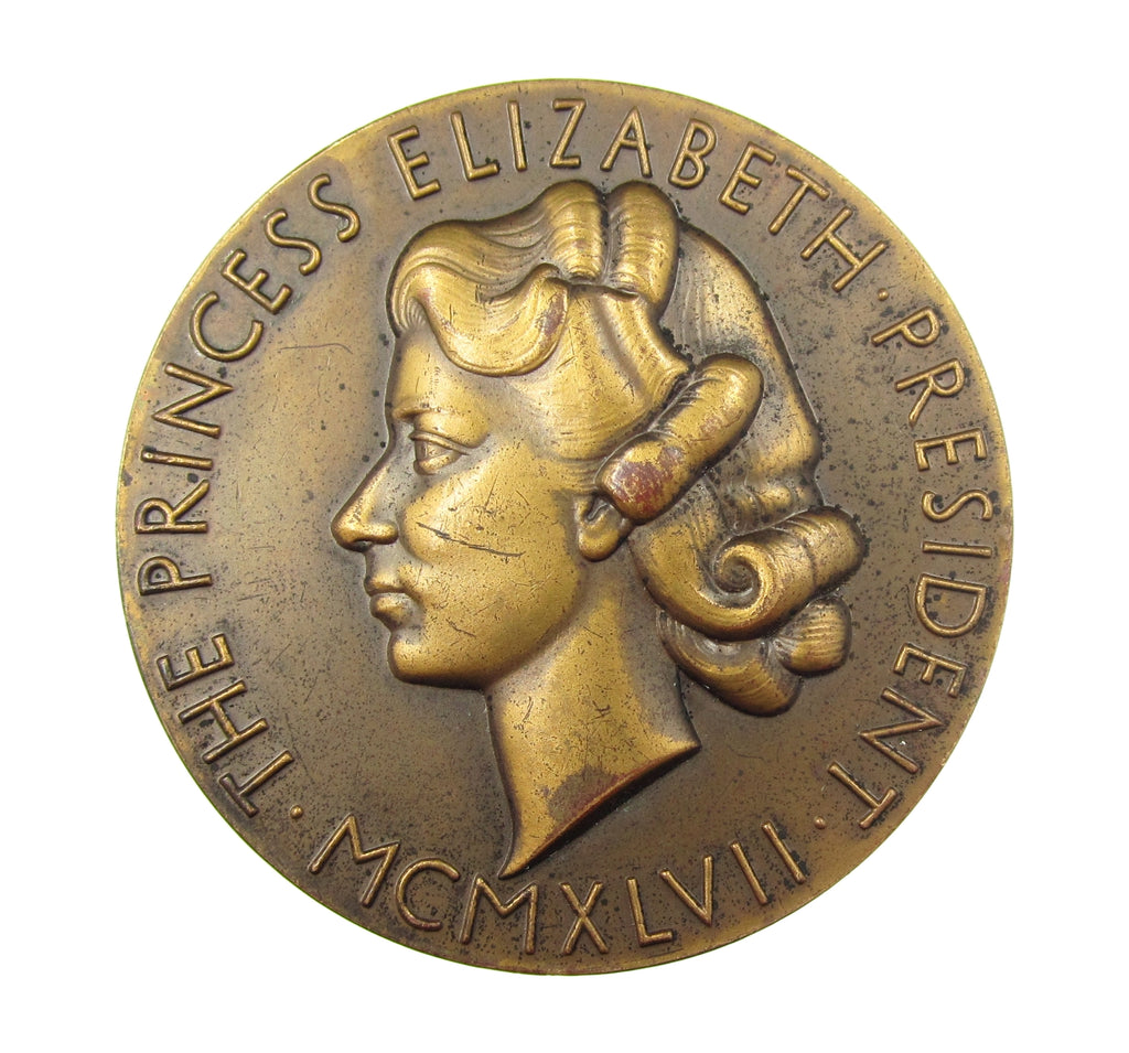 Obverse with wonderful early portrait of Princess Elizabeth, reverse with facade of the Society's building. Edge engraved 'Christine Margaret Shepherd. Intermediate Examinations, 1953, Arithmetic'.
