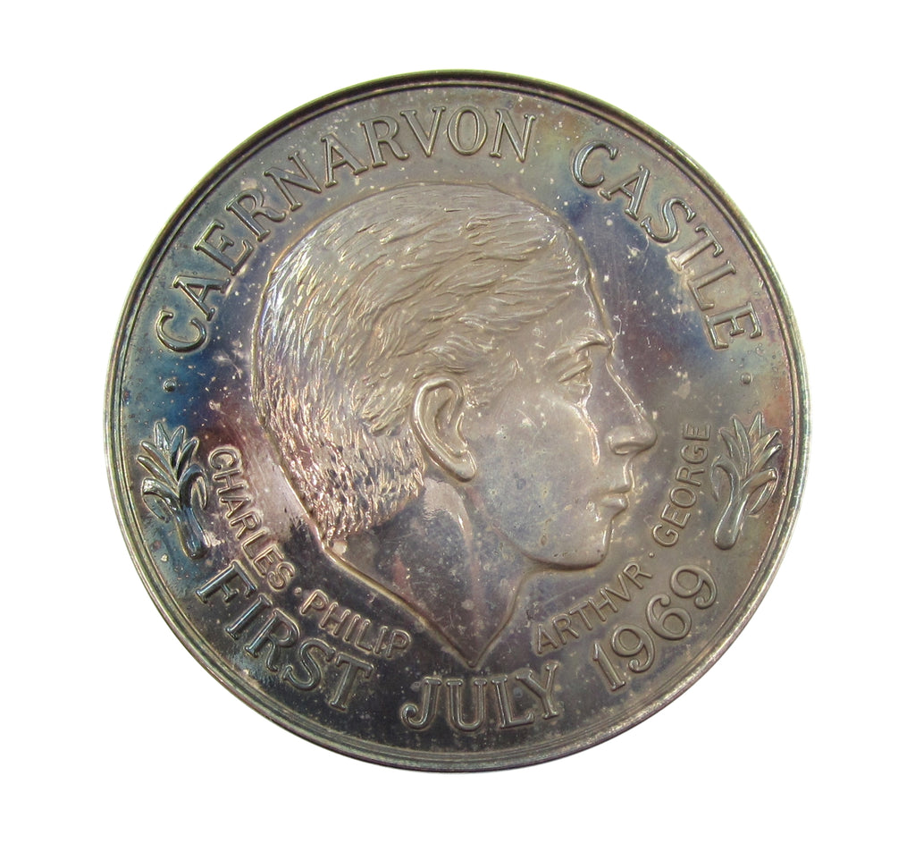 Obverse with portrait of young Prince of Wales, reverse with shield of arms and hallmarked below.