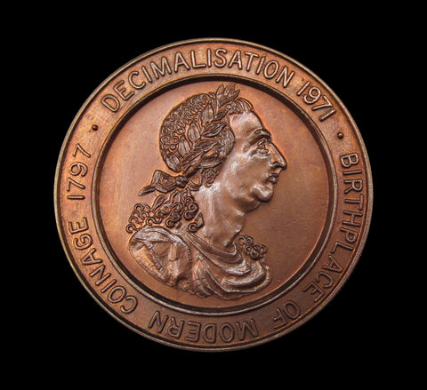 Birmingham Numismatic Society. Obverse with SOHO style head of George III, silver medal hallmarked to reverse.