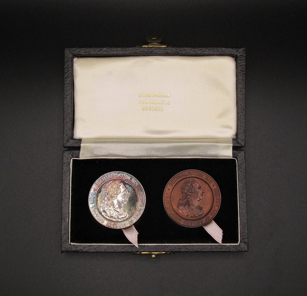 1971 Birmingham Numismatic Society Bronze & Silver Medal Pair - Cased