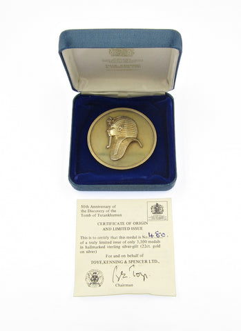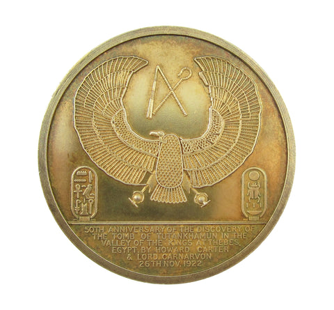 50th anniversary of the discovery of The Tomb of Tutankhamun. Obverse with funeral head of Tutankhamun, reverse with vultcher with wings spread above legend. Edge hallmarked and numbered 480.