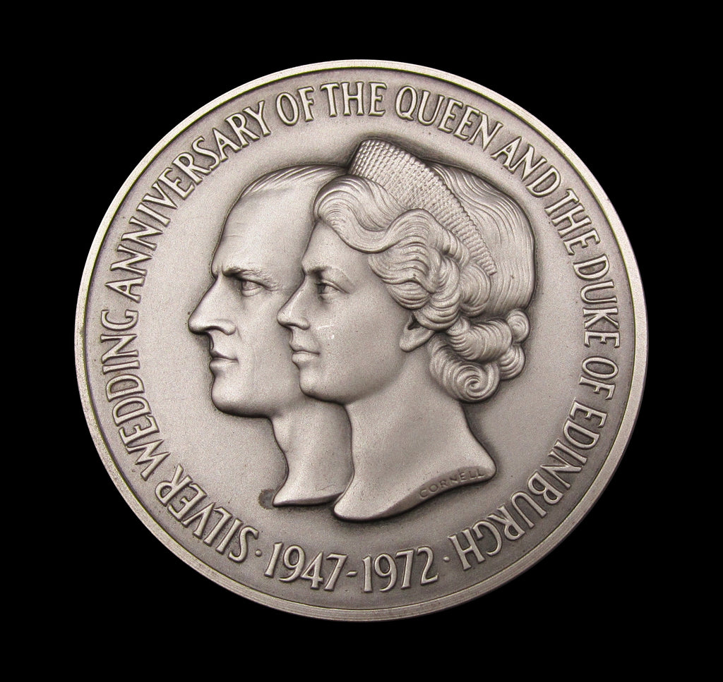 1972 Silver Wedding Anniversary 51mm Silver Medal - By Cornell