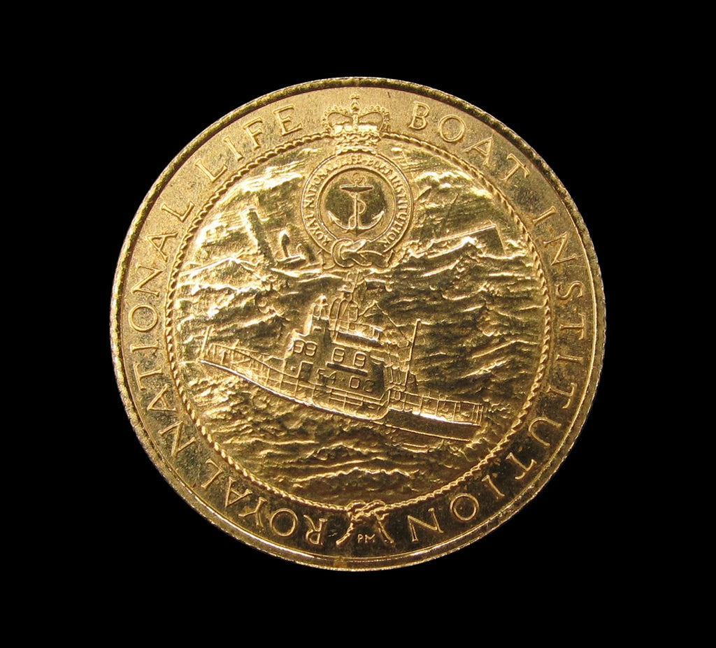 Obverse with crowned bust of Elizabeth II, reverse showing lifeboat upon rough seas. Edge hallmarked
