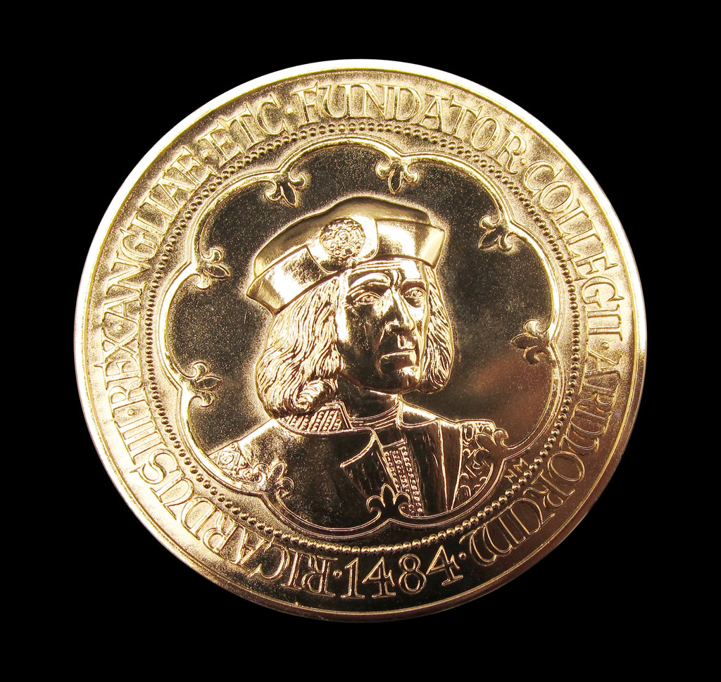 Obverse with bust of King Richard III, reverse with coat of arms.