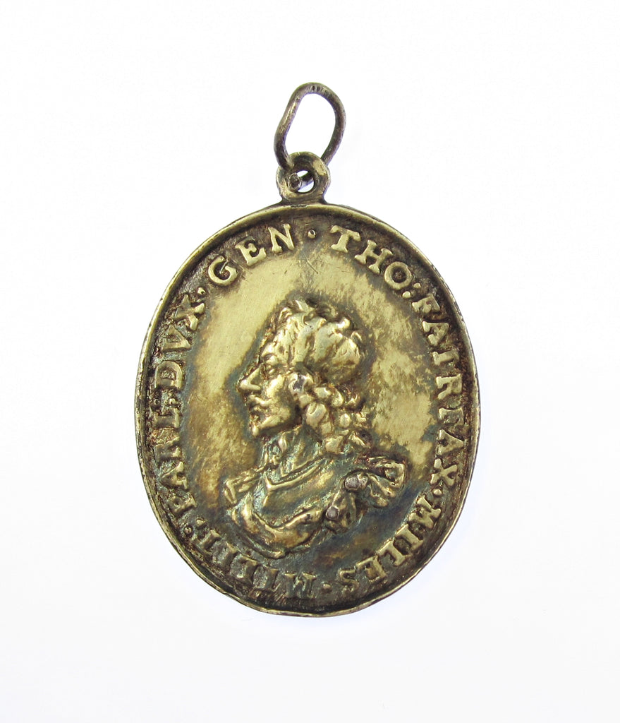 Obverse with armoured bust of Fairfax, reverse with MERVISTI in three lines and date below.