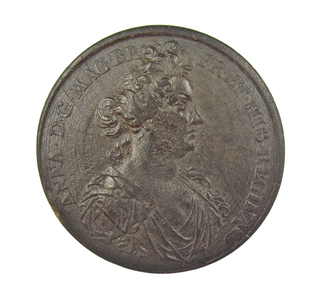 Obverse with bust of Queen Anne, reverse with bust of the Duke of Marlborough.