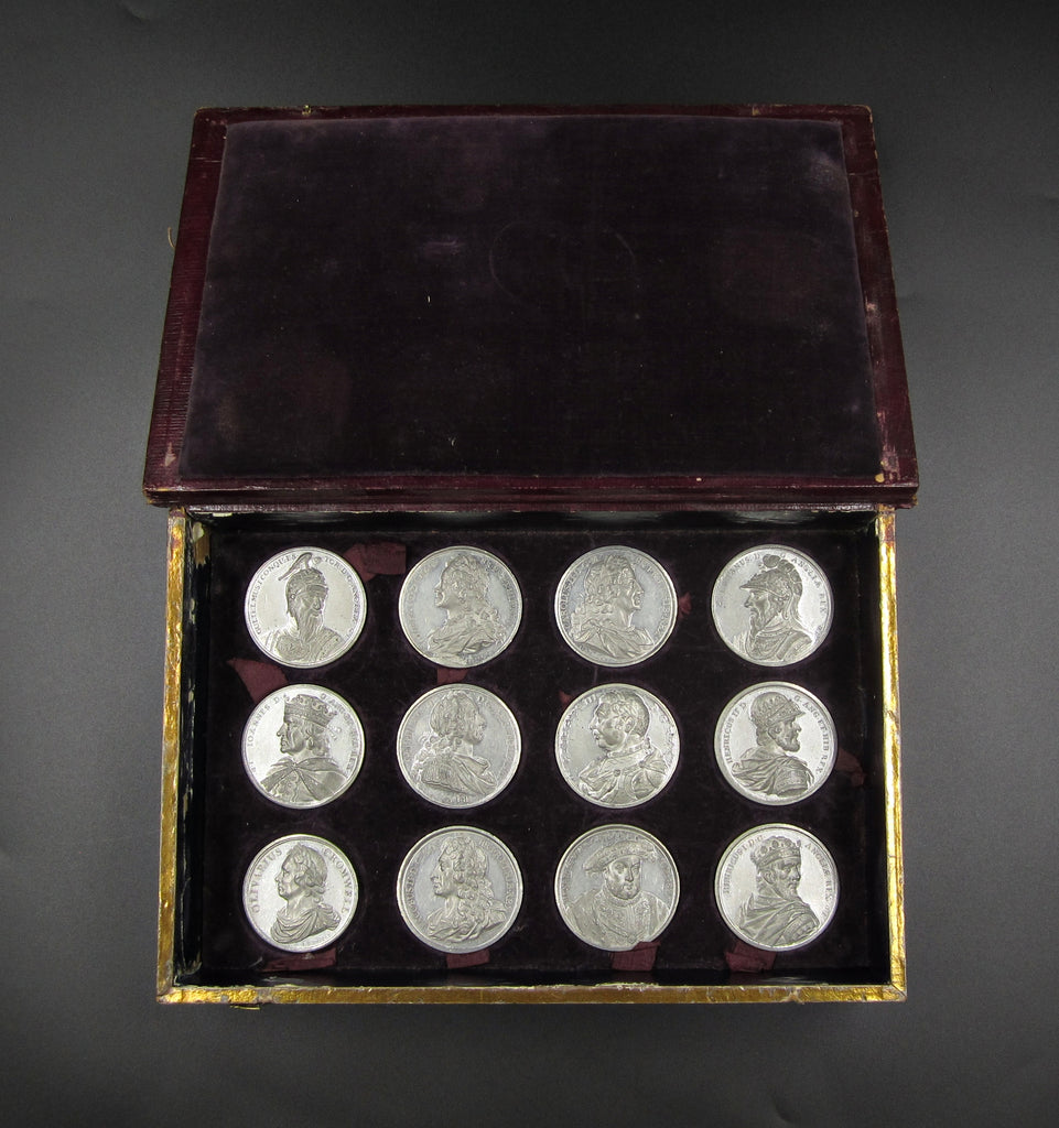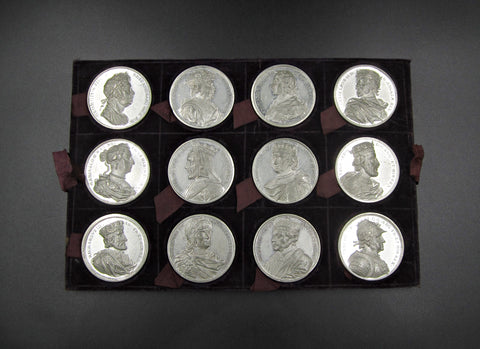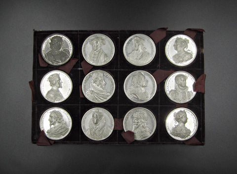 Set of 36 medals from William I to George IV, with portraits to the obverse and biographical descriptions to reverse.