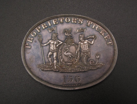 Obverse with horses racing past grandstand, reverse with arms and supporters, numbered 156.