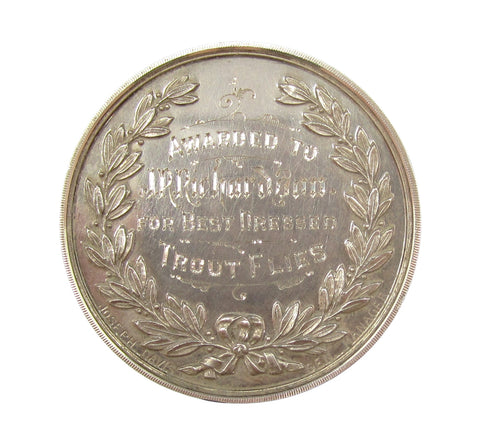 Scarborough Fishery & Marine Exhibition prize medals both awared to J.R Richardson for 'Best Dressed Grayling Flies' and 'Best Dressed Trout Flies'.