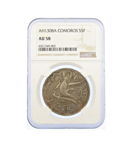 Comoros, French Colony. Said Ali Ibn Said Omar. 5 Francs AH 1308 (1890).