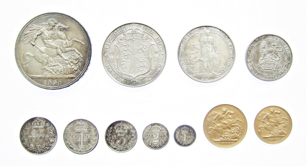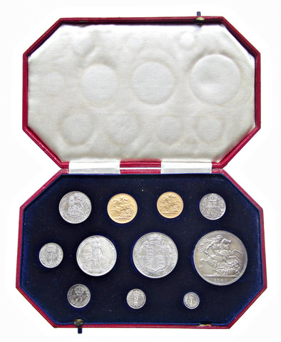Attractively matched set, the gold with only the slightest of hairlines. Housed in original case. About as struck.