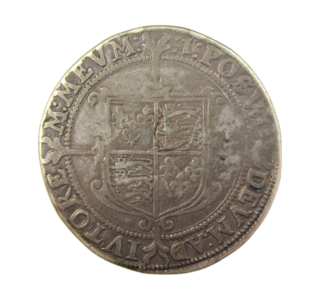Seventh issue. Obverse with bust of Elizabeth I, reverse with cruciform shield. Mintmark 1.
