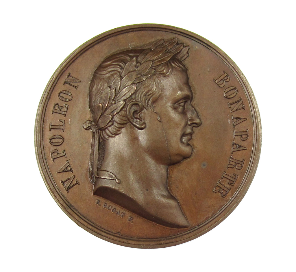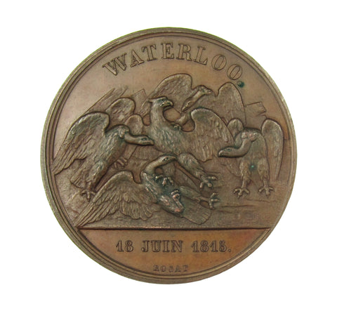 Obverse with bust of Napoleon, reverse depicts the French eagle, surrounded by attacking vultures, a harsh metaphor for the Seventh Coalition. Edge stamped cuivre.