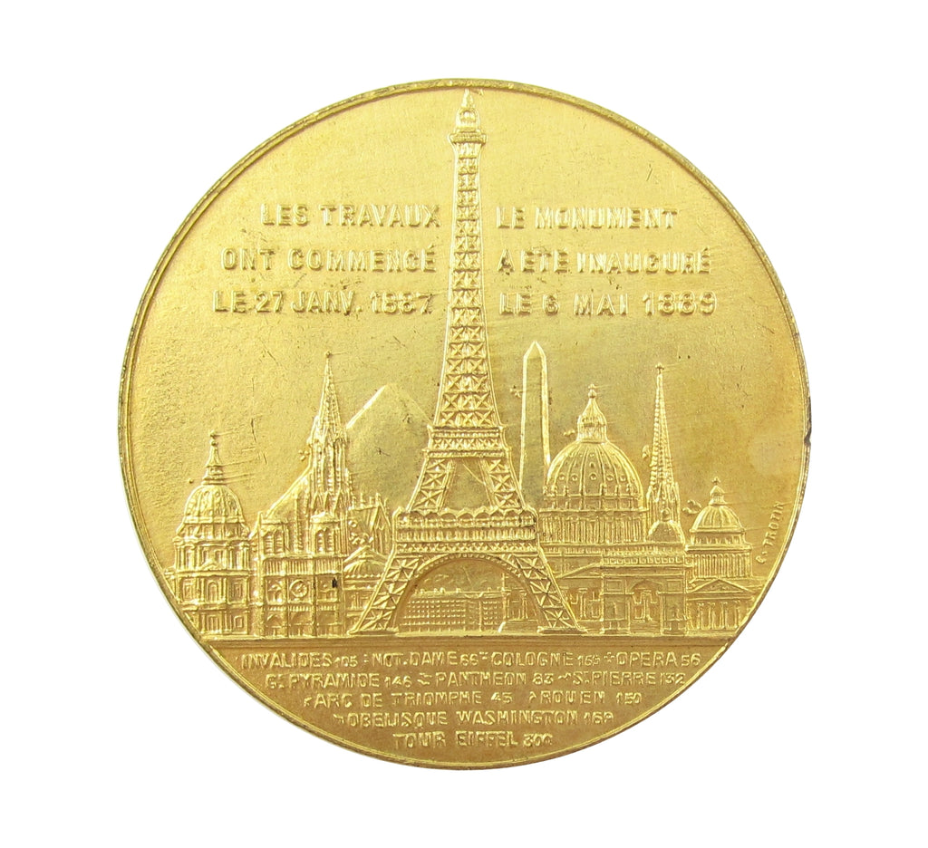 Obverse with a view of the Eiffel Tower against a combination backdrop of other tall buildings and monuments of the World.