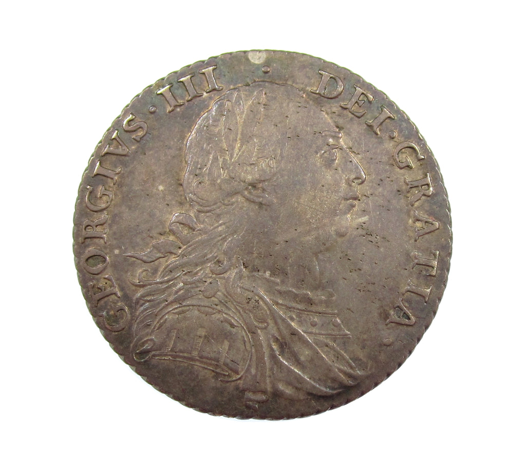 Older laureate bust. Without semee of hearts in Hanoverian shield.