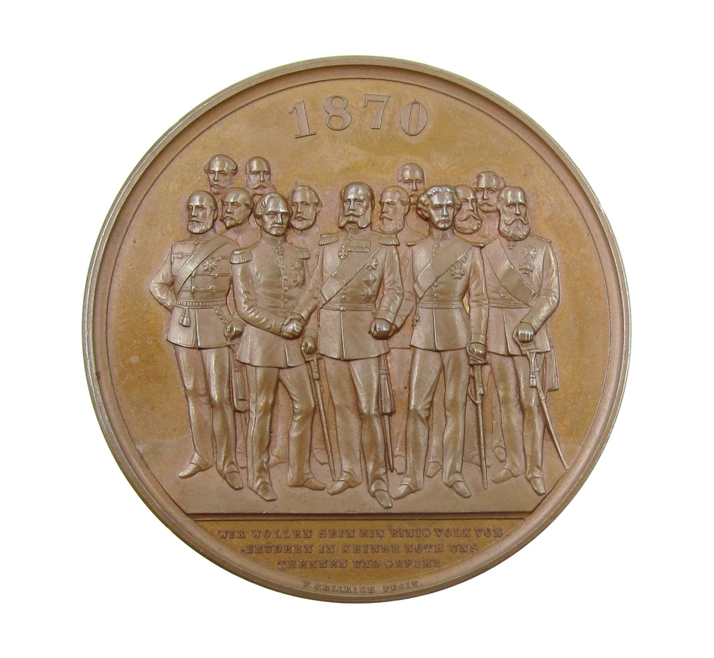 Obverse with Wilhelm I surrounded by German Princes and dated 1870, reverse with 1871 below crown, within wreath.