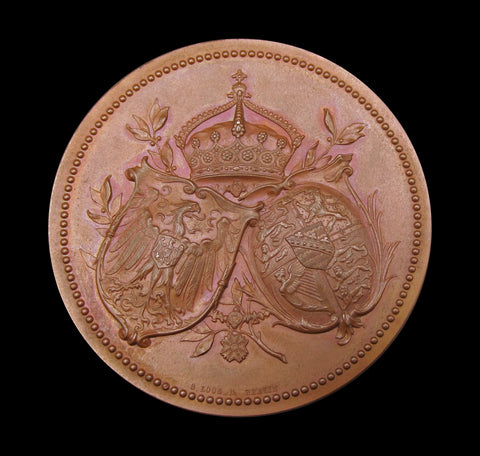 Obverse with bust of Victoria, Princess Royal, wife of Emperor Frederick III, reverse with conjoined shields beneath crown.