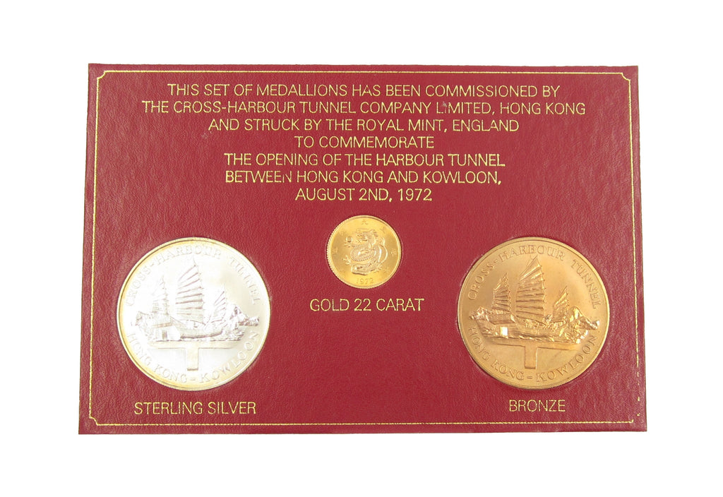 Set of 3 medallions struck to commemorate the opening of the Harbour Tunnel between Hong Kong & Kowloon.