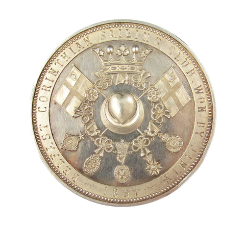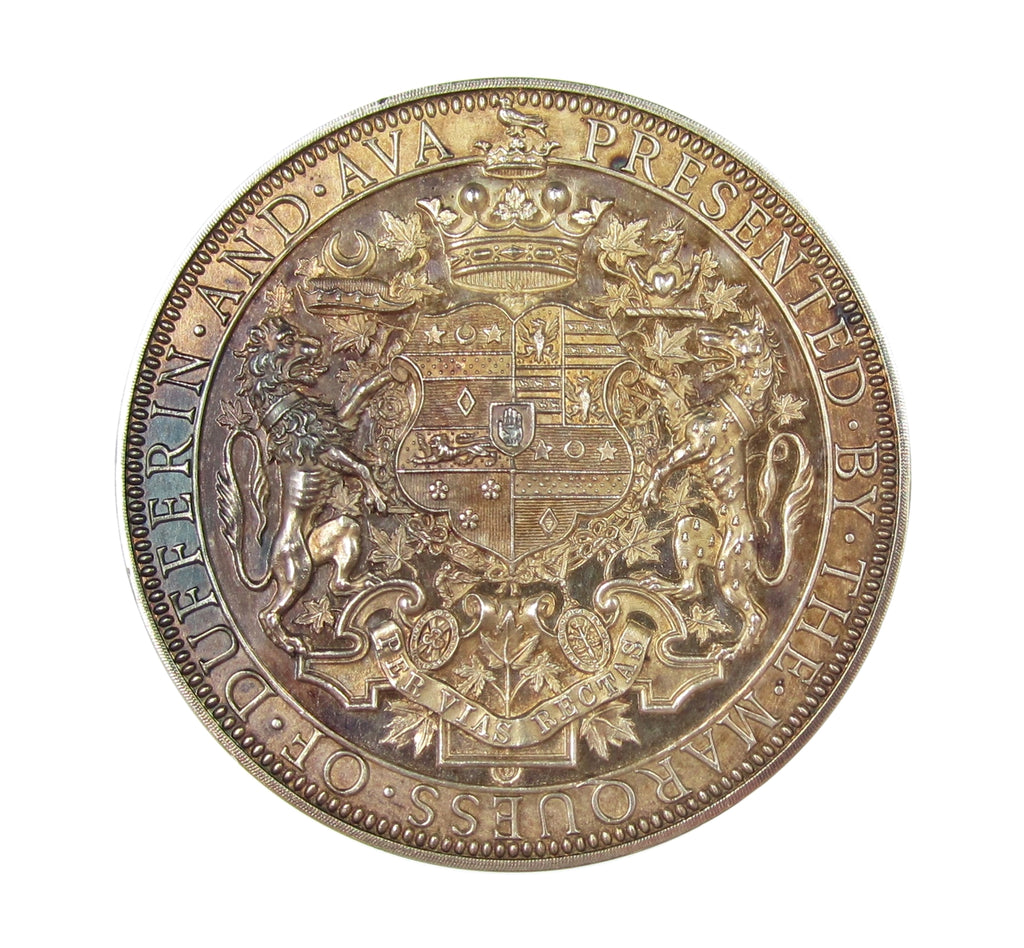 A silver award of Frederick Temple Hamilton-Temple, Marquess of Dufferin and Ava, Viceroy of India and Burma. Obverse with arms of Dufferin with supporters, reverse with the Lord’s orders of chivalry suspended from a chain, crown above and flags at sides. Engraved around border with 'Belfast Corinthian Sailing Club - Won By Jinty - 1891'.