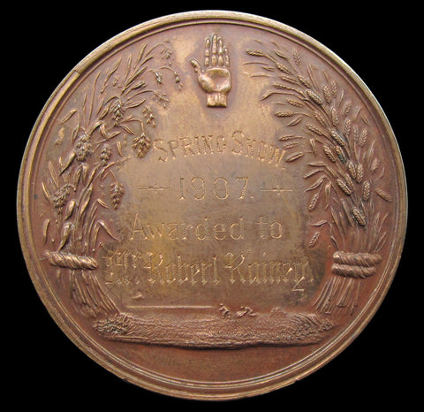 Silver medal dated 1898, bronze medal dated 1907. Both named on reverse to Mr Robert Rainey.