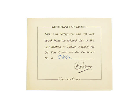 Obverse with a pair of hands in blessing, reverse reads 'All the firstborn of thy sons thou shalt redeem; to the value of Five Shekels.