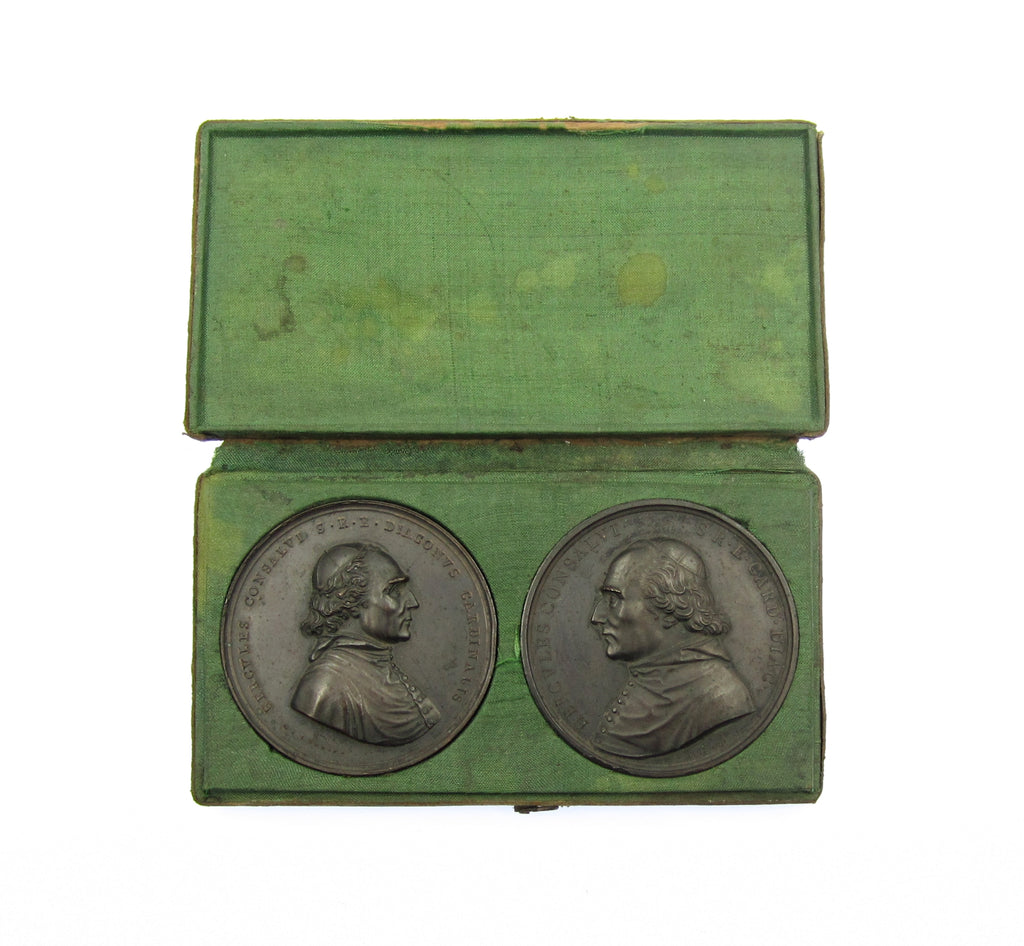 Italy 1824 Cardinal Ercole Consalvi 54mm Bronze Medal Pair - Cased