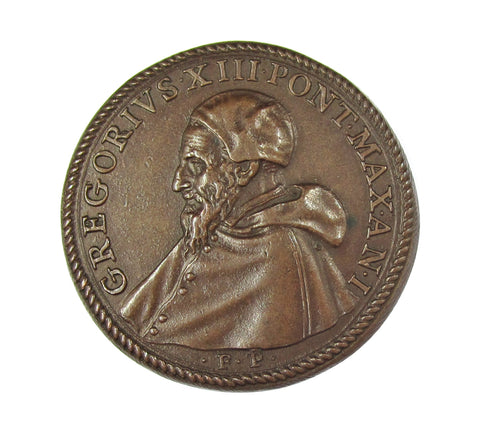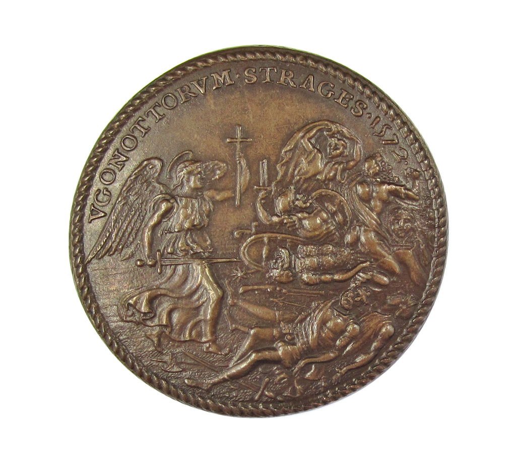 Obverse with bust of Pope Gregory XIII, revers showing the St Bartholomew’s Day Massacre of the Hugenots.