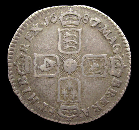 Obverse with laureate and draped bust, reverse with crowned cruciform shields. 7 over 6 in date.