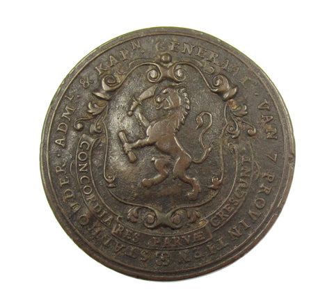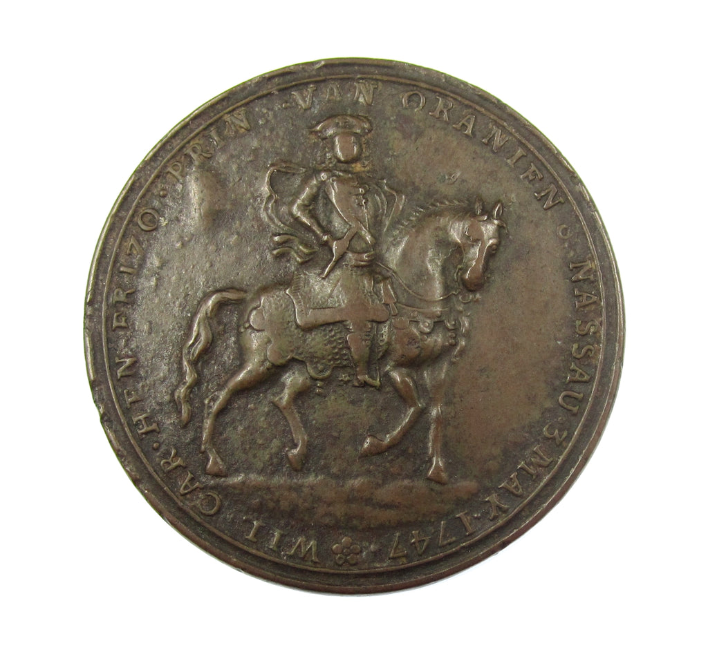 To commemorate the appointment as governor of the 7 provinces on May 3, 1747. Obverse with Wilhelm on horseback, reverse with lion coat of arms.