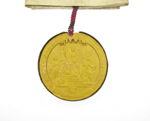 The seal is housed in its original bronze skippet, which is in turn housed in its original box, emblazoned with the royal crest.