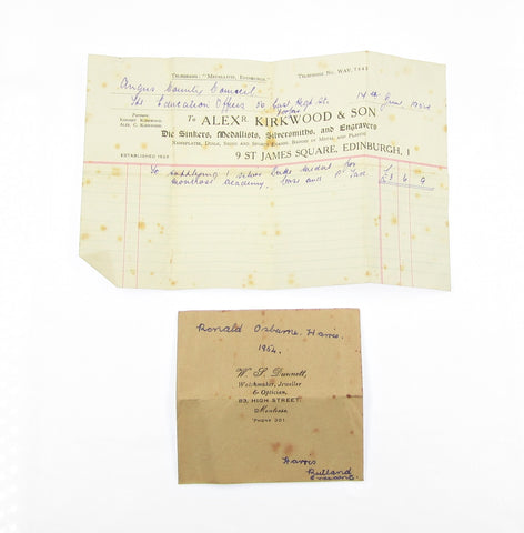 Obverse with view of the school, reverse with 15 line legend. Edge engraved 'Ronald Osborne Harris, 1954'.