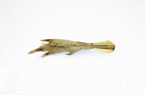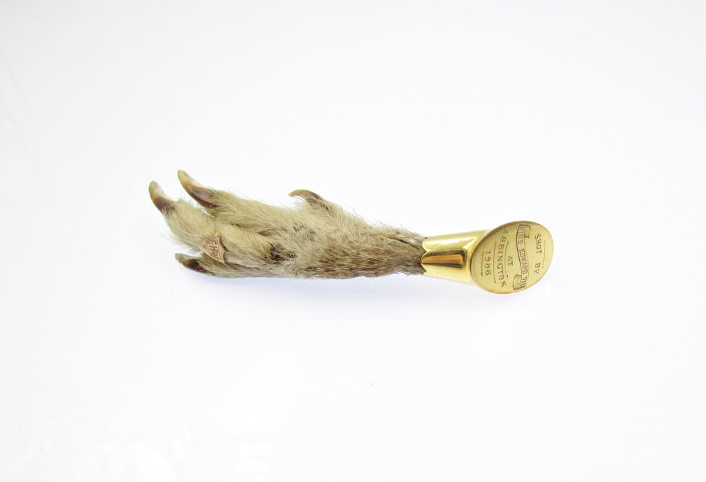 A gold pin made from a bird’s claw, possibly a pheasant, the top engraved 'Shot by King Edward VII at Abbington 1906'.