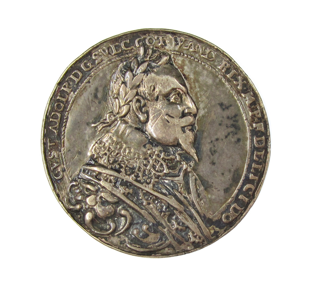 Obverse with armoured bust of Gustav II, reverse with crowned bust of Queen Maria Eleonora wearing elaborate lace collar.
