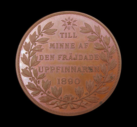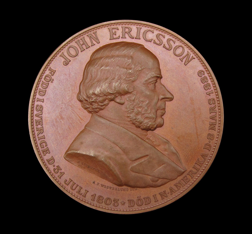 Obverse with bust of Ericsson, reverse with four line inscription within wreath.