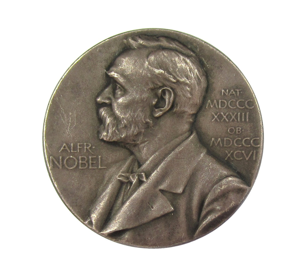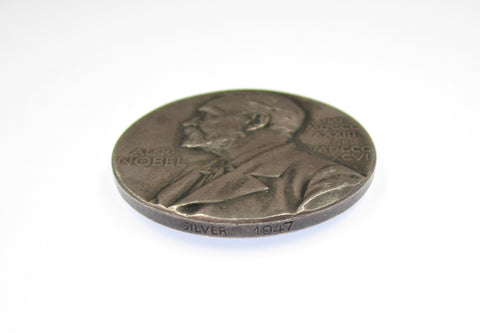 Obverse with bust of Alfred Nobel, reverse with inscription around the Flame of Eternity. Edge stamped silver and dated 1947.