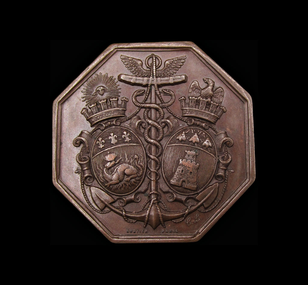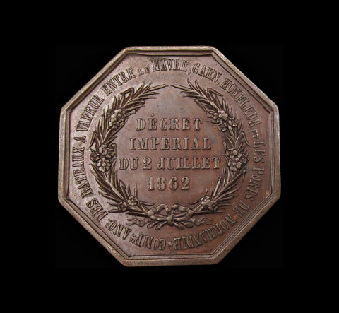 Obverse with anchor dividing crests, reverse with legend in and around wreath.