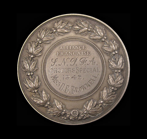 France 1943 Alliance Francaise 50mm Silver Medal - By Corbin
