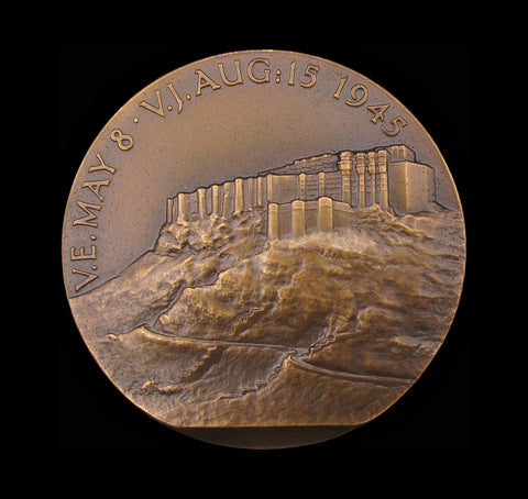 51mm. Bronze. Designed by J.R Pinches, distributed by the Goldsmiths & Silversmiths Co of London (Garrards).